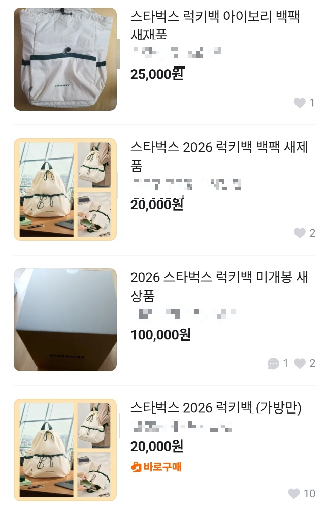 - 키워드 알림 설정: '스타벅스 럭키백 가방' 혹은 '스타벅스 백팩'으로 키워드 알림을 걸어두세요.